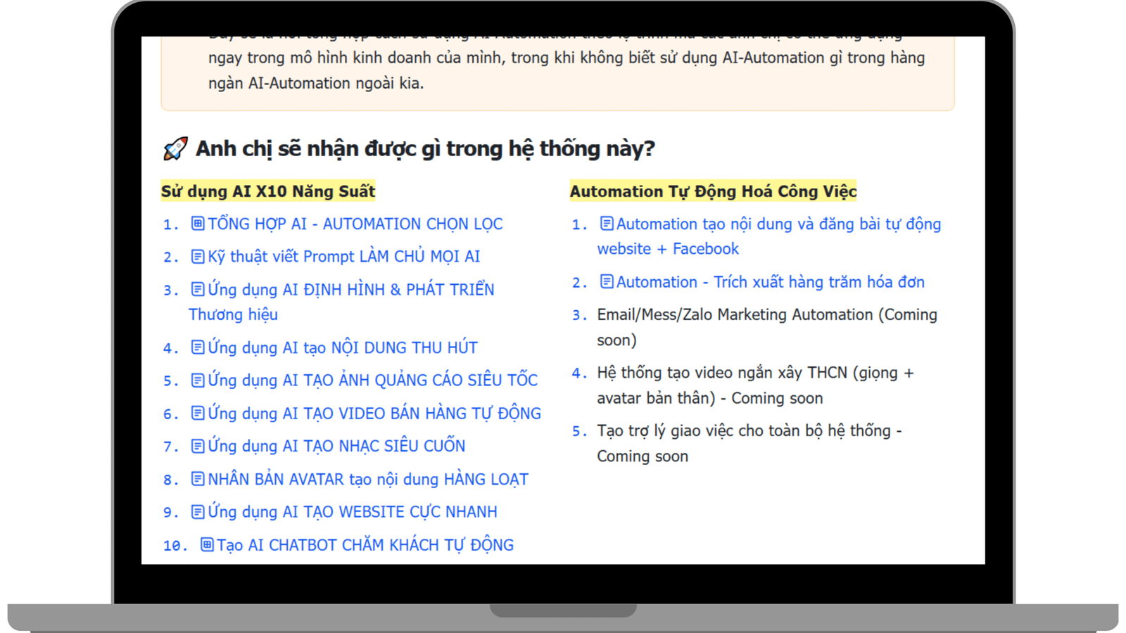 Bộ tài liệu phù hợp với mọi ngành: thời trang, F&B, giáo dục, dịch vụ, sản phẩm số… Miễn là anh chị có khao khát ứng dụng AI Automation để tìm kiếm thêm khách hàng.